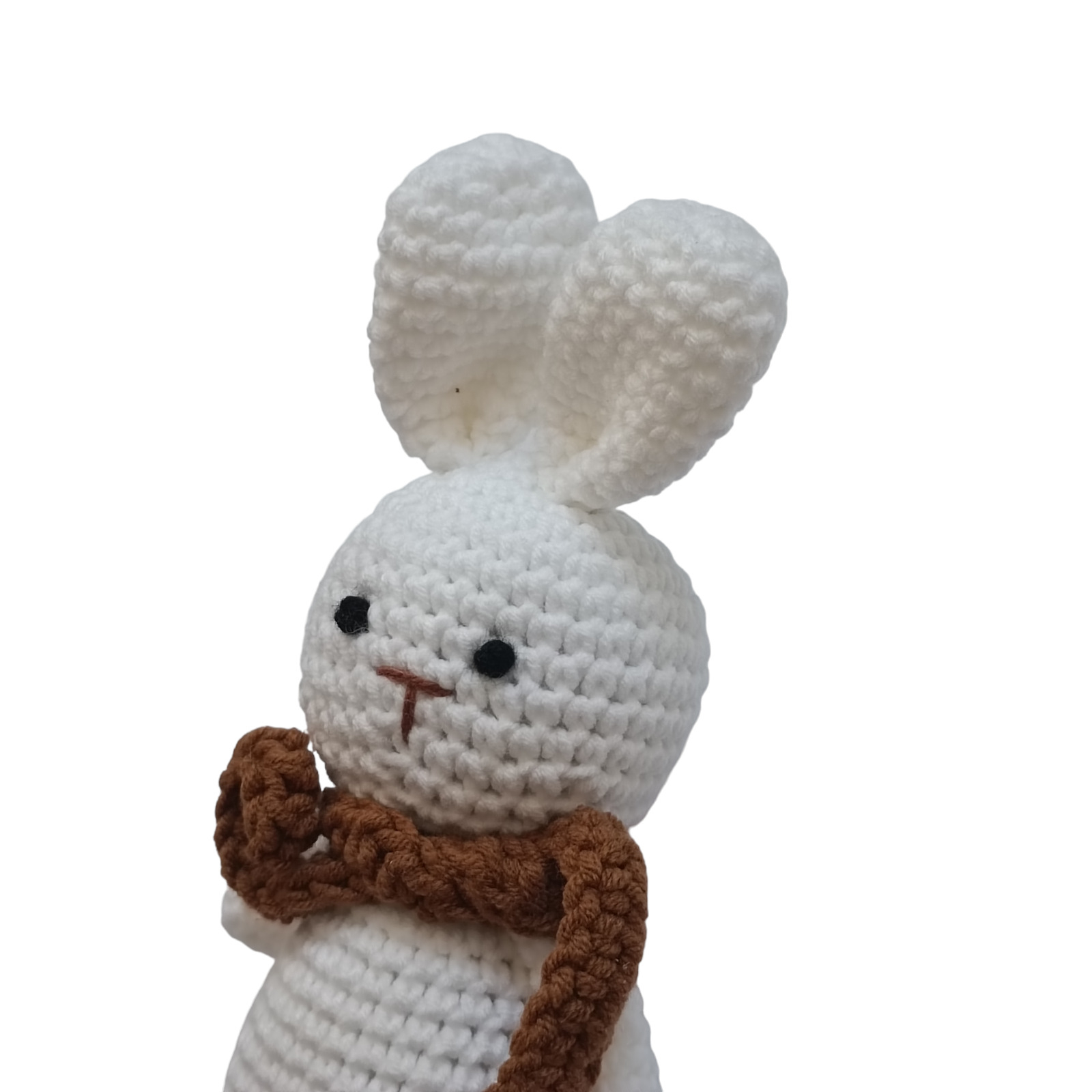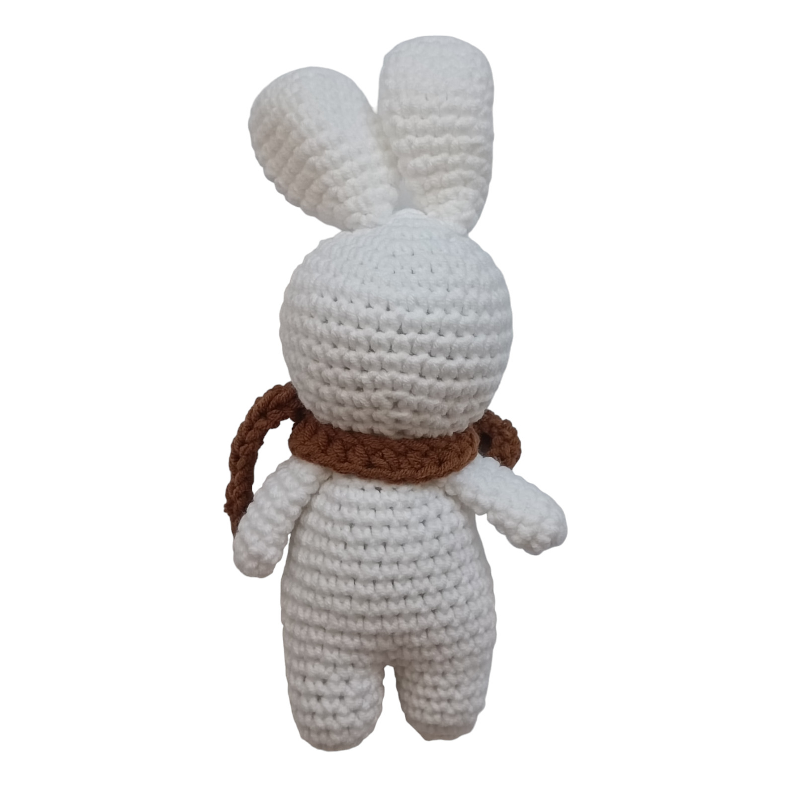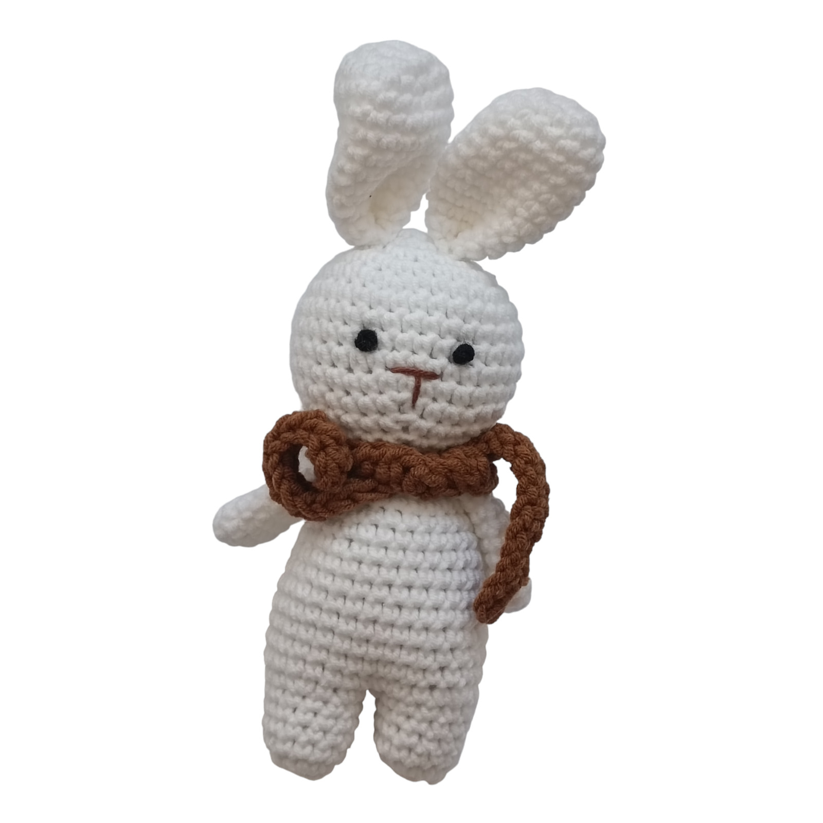 Jucarie crosetata, amigurumi, lucrata din fir de bumbac, reprezentand un iepuras.
