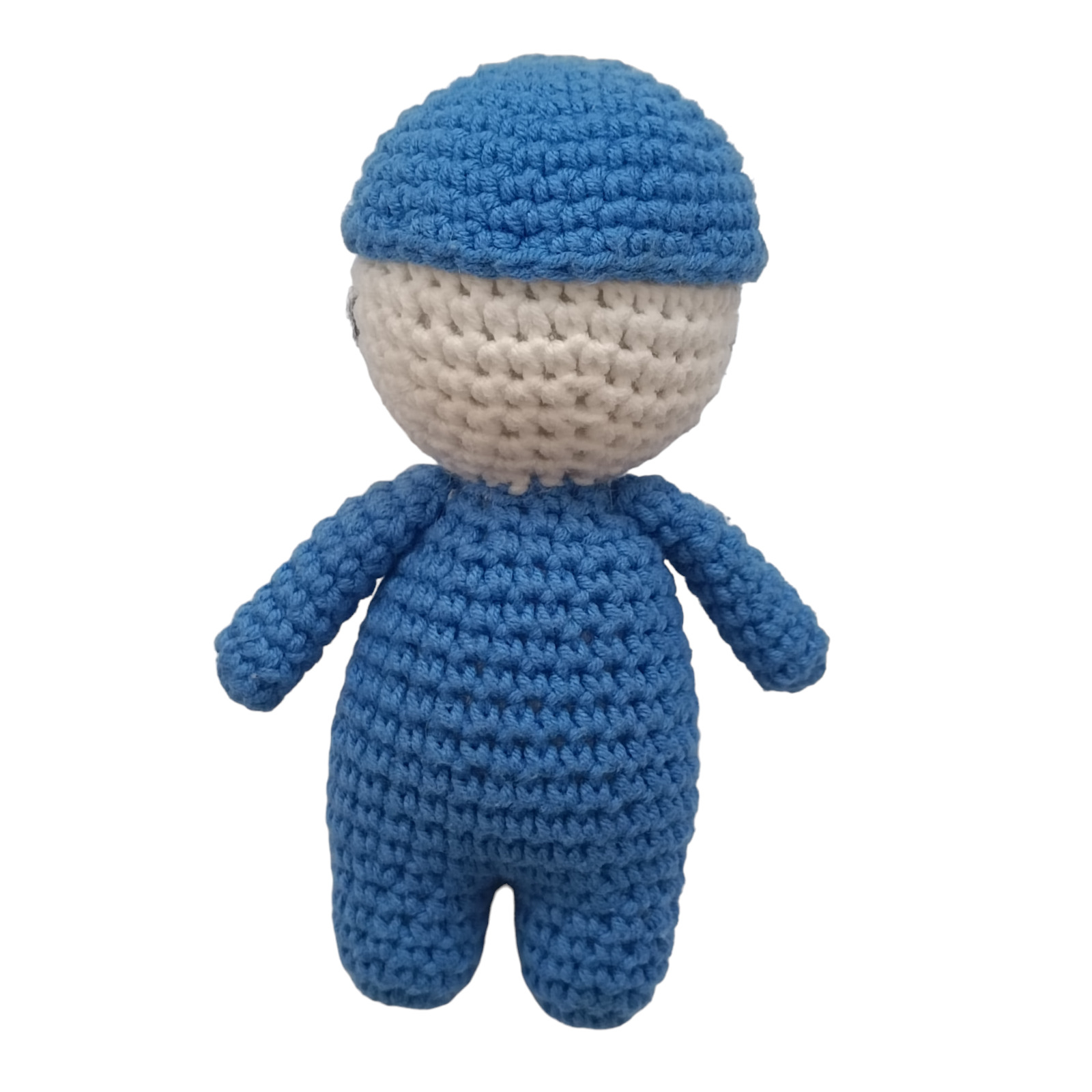 Jucarie crosetata, amigurumi, lucrata din fir de bumbac, reprezentand un pinguin.