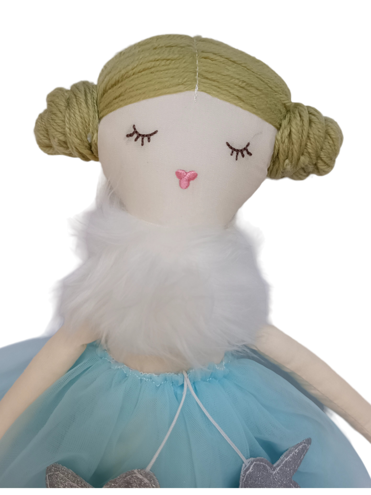 Iti facem cunostinta cu Ducesa albastra, o papusa minunata din material textil care poarta o fusta din tulle albastru cu doua stelute argintii.