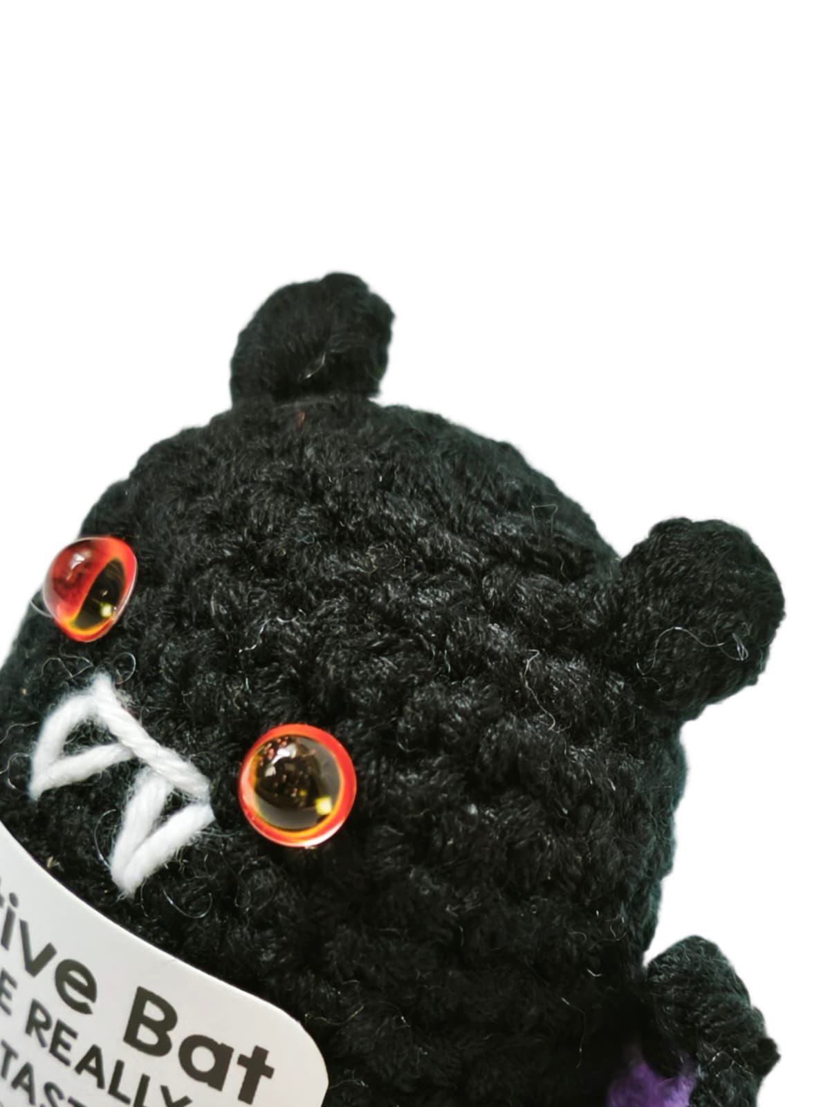 Figurina crosetata amuzanta cu mesaj pozitiv — un mic decor perfect pentru birou, casa sau cadou. Realizata manual din fire moi, fiecare figurina transmite un mesaj motivational haios care aduce zambete si buna dispozitie. Ideala pentru a inveseli ziua cuiva sau pentru a adauga un strop de umor si inspiratie in decorul tau.