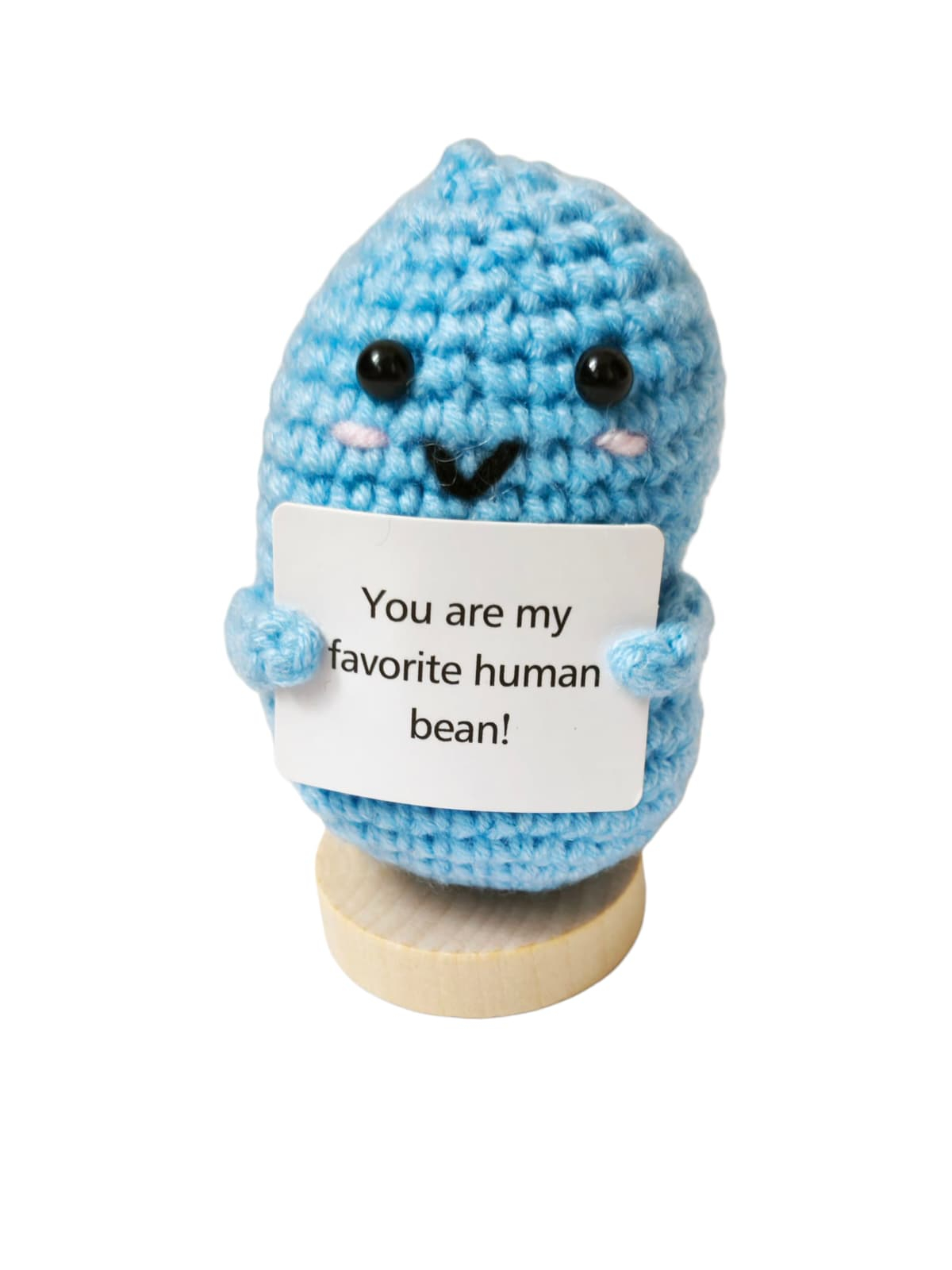 Figurina crosetata Boaba fasole amuzanta, cu mesaj pozitiv