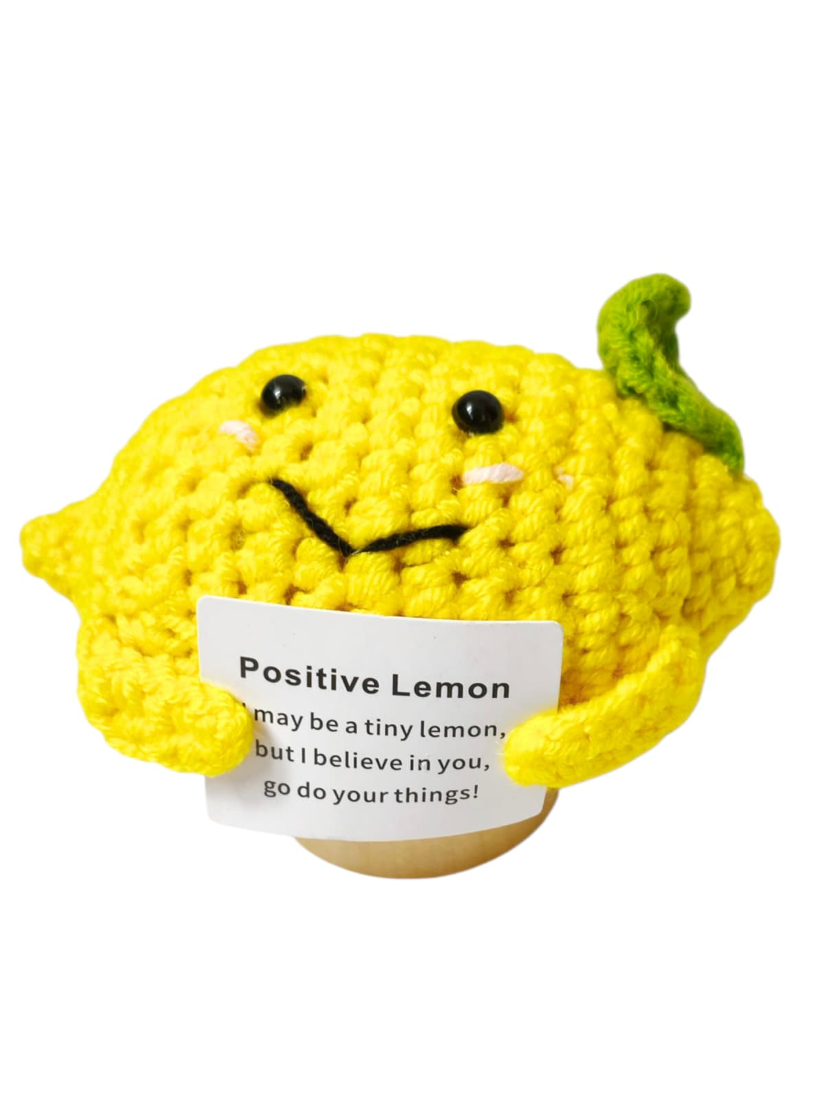 Figurina crosetata amuzanta cu mesaj pozitiv — un mic decor perfect pentru birou, casa sau cadou. Realizata manual din fire moi, fiecare figurina transmite un mesaj motivational haios care aduce zambete si buna dispozitie. Ideala pentru a inveseli ziua cuiva sau pentru a adauga un strop de umor si inspiratie in decorul tau.