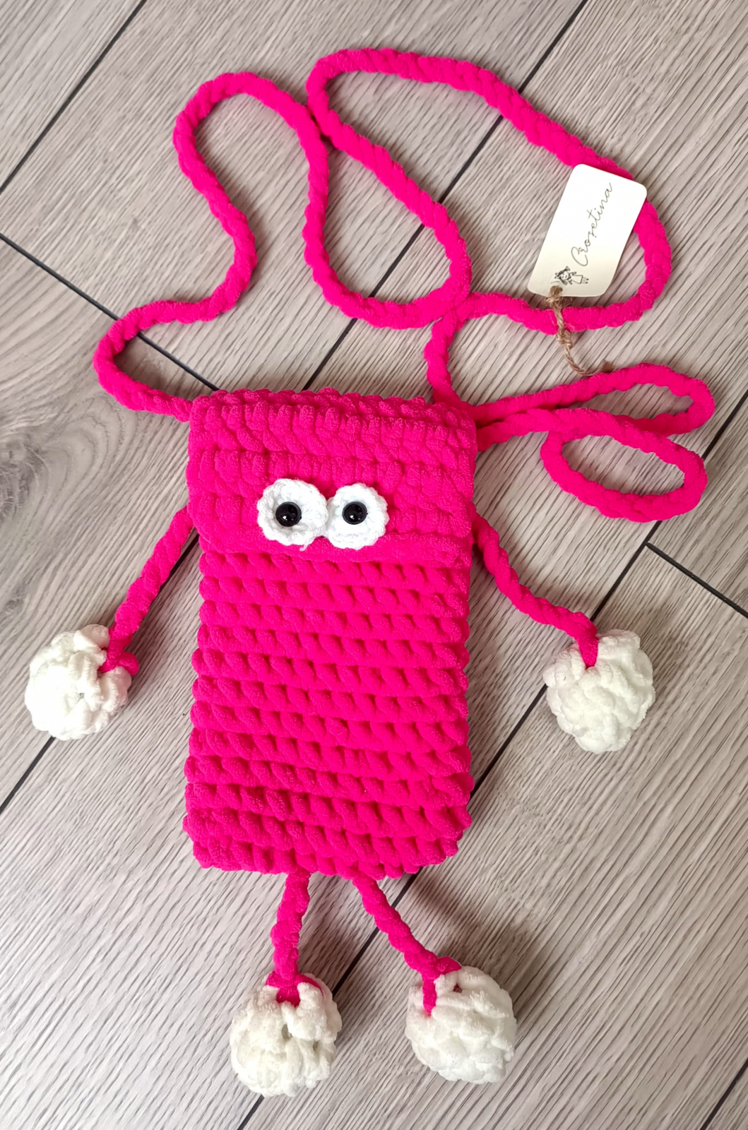 Aceasta geanta crosetata manual are un design unic si atractiv, realizat cu mare atentie la detalii. Geanta este confectionata din fir textil de culoare roz intens, avand o textura moale si placuta la atingere, ce ii confera un aspect plin de viata si energic. Forma este dreptunghiulara, fiind potrivita pentru depozitarea unor obiecte mici, cum ar fi telefonul mobil, cheile sau alte accesorii personale.