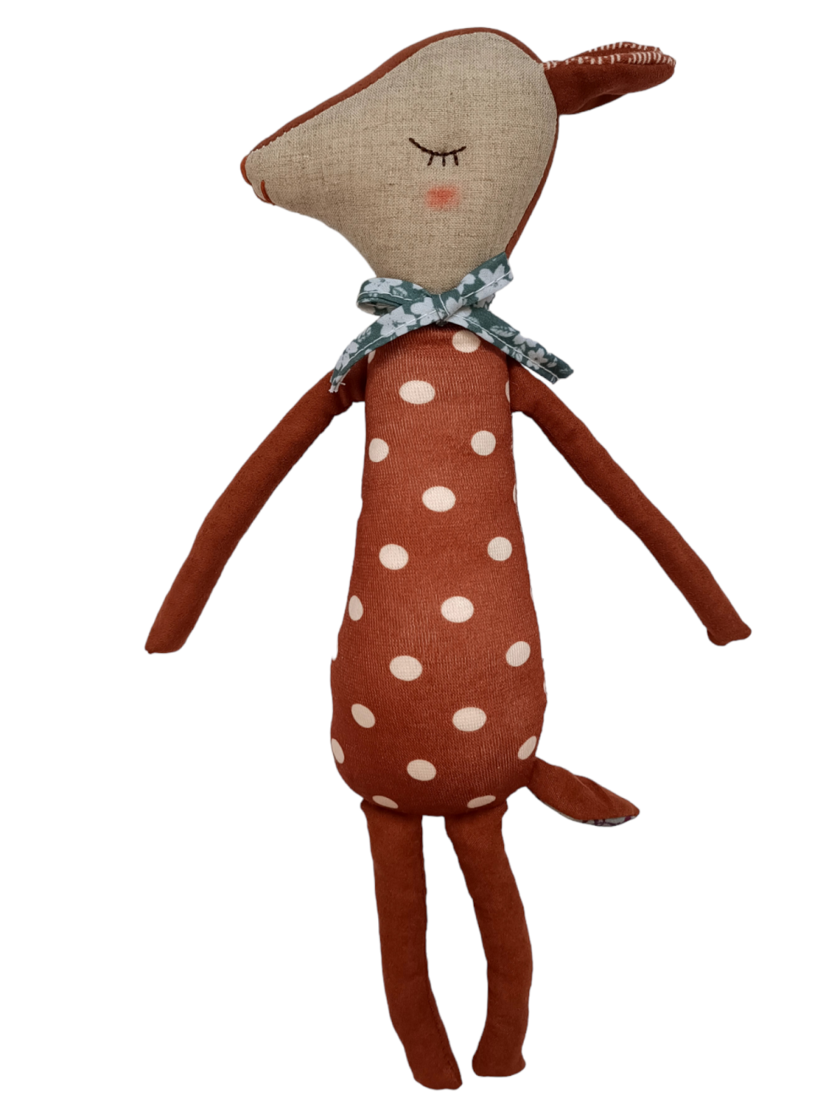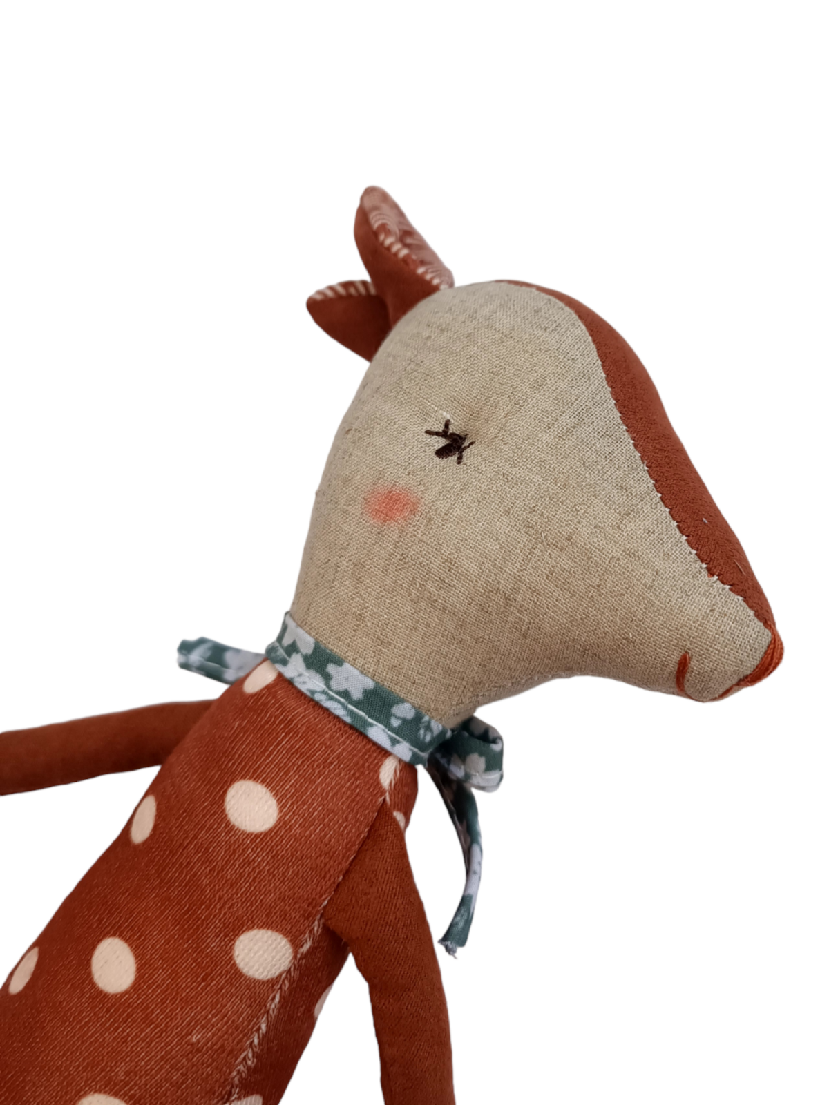 Adauga un strop de magie în joaca copilului tau cu aceasta jucarie din material textil, in forma de caprioara. De culoare maro cu buline crem, caprioara este realizata dintr-un material moale si placut la atingere, perfecta pentru imbratisari si joaca. Ochii sunt brodati cu grija, adaugand un detaliu adorabil si sigur pentru micutul tau. Aceasta jucarie este ideala pentru dezvoltarea senzoriala si pentru a aduce un zambet pe fata copilului. Un cadou minunat care combina confortul cu designul fermecator!
