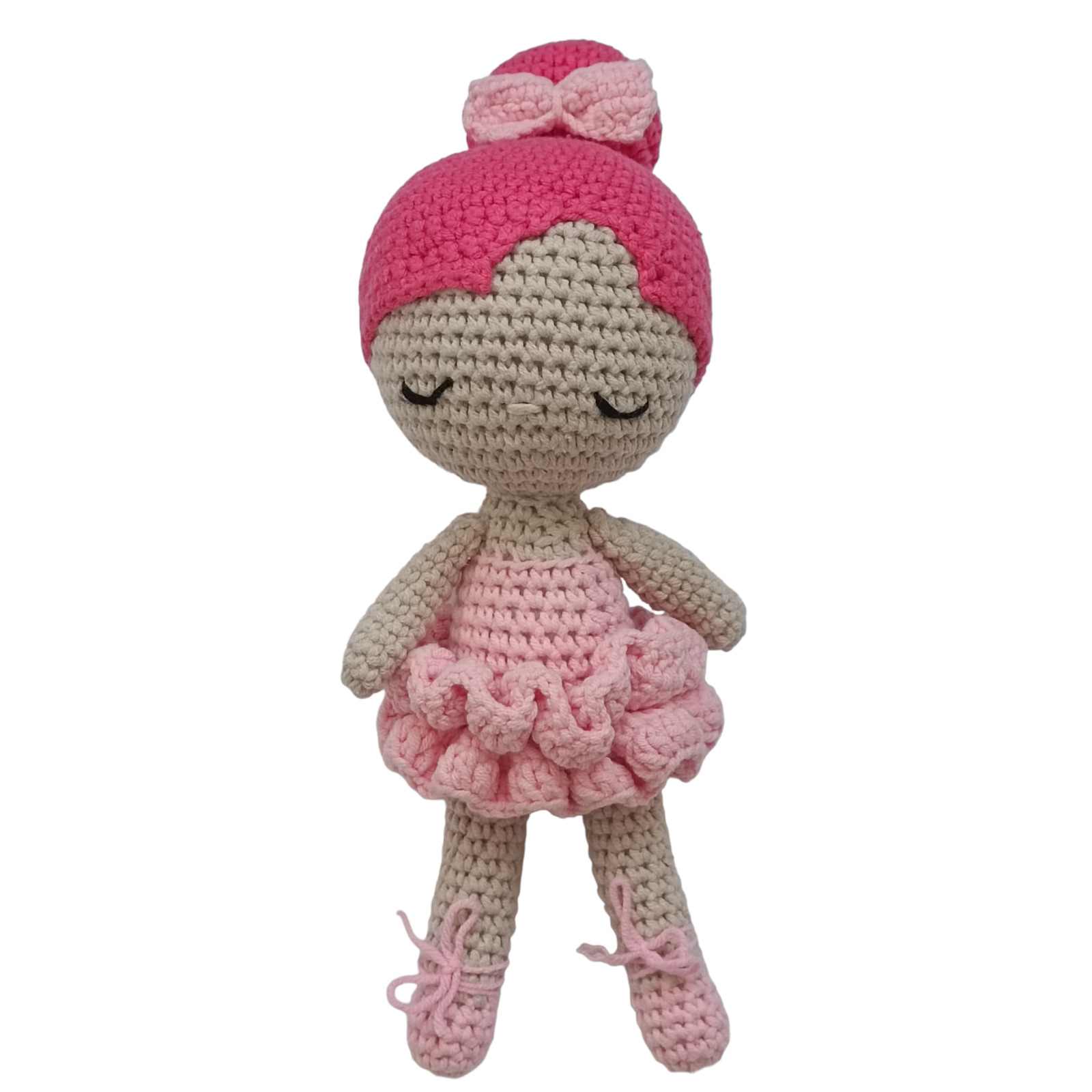Papusa balerina crosetata, lucrata din fir de bumbac, rochita roz crosetata.