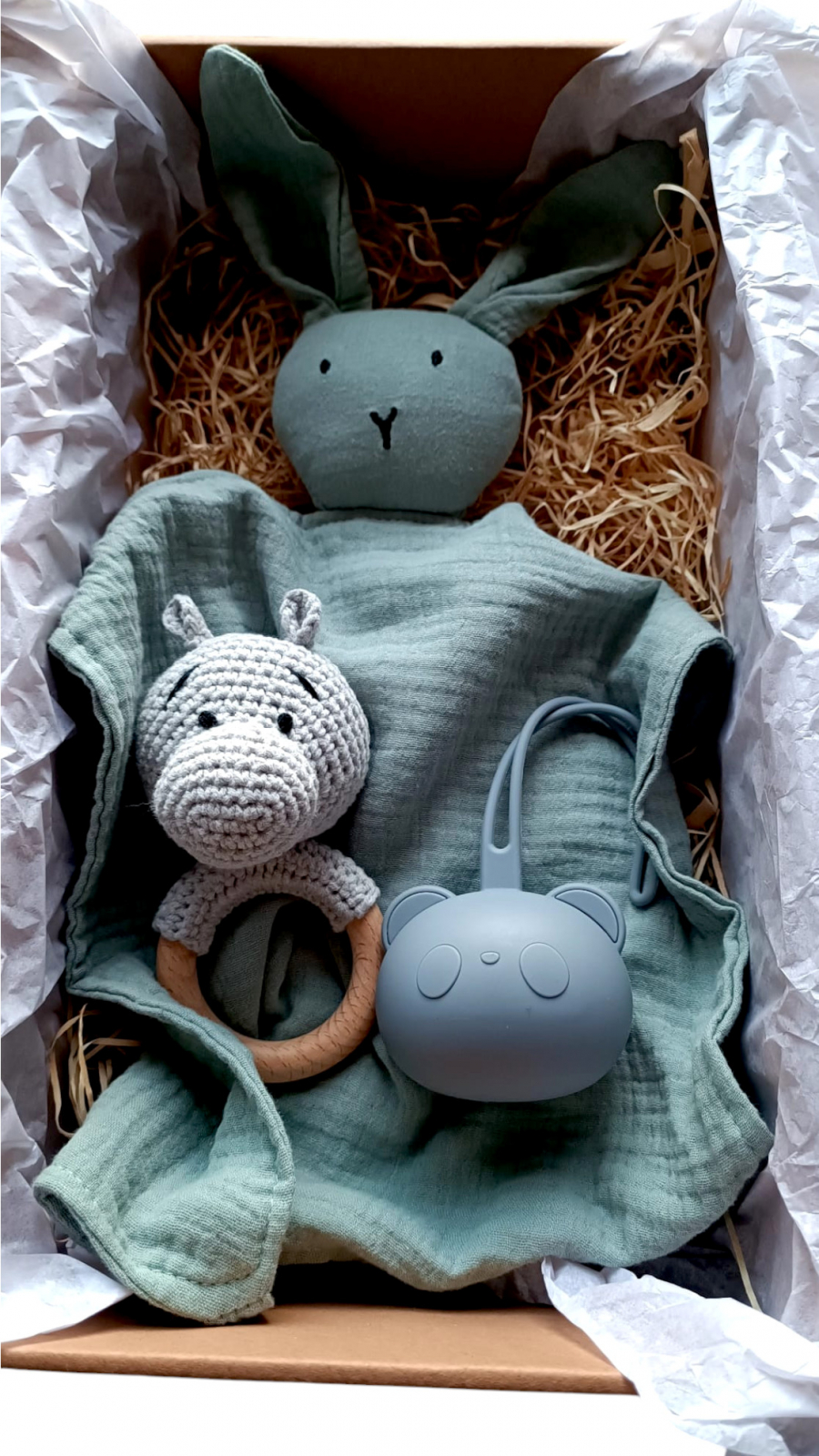 Ofera-i micutului tau sau unui nou-nascut drag un set cadou adorabil si practic! Creat din materiale naturale, acest set este ideal pentru momentele de rasfat si joaca ale bebelusului.
