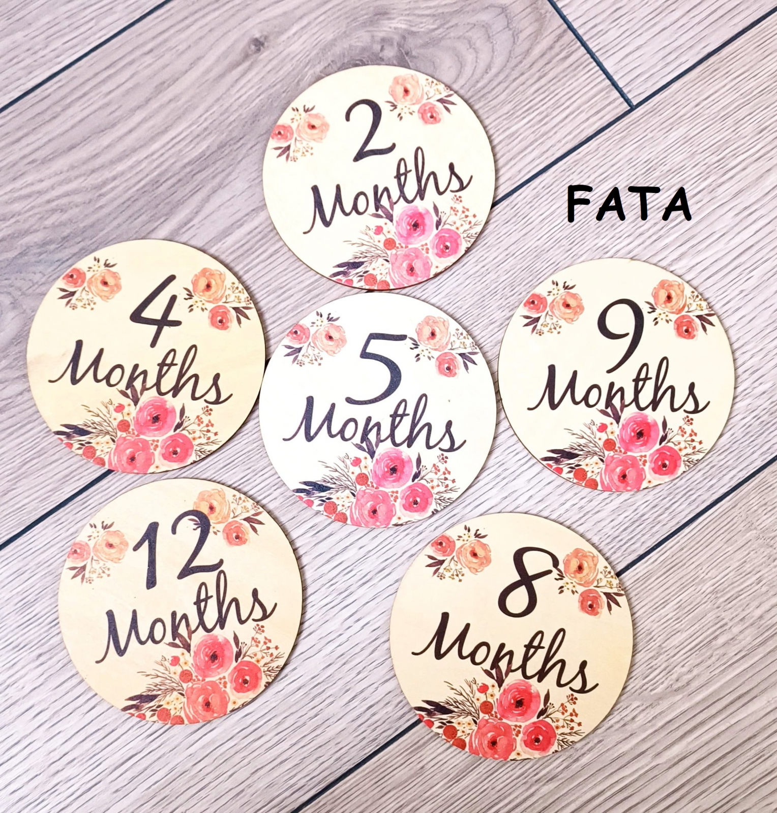 Set de 6 carduri din lemn pentru progresul lunar al bebelusului, recuzita foto pentru ziua de nastere.