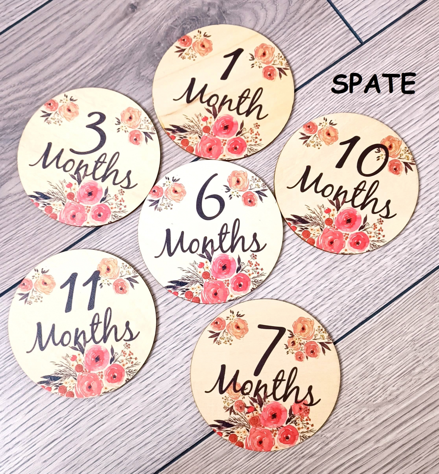 Set de 6 carduri din lemn pentru progresul lunar al bebelusului, recuzita foto pentru ziua de nastere.