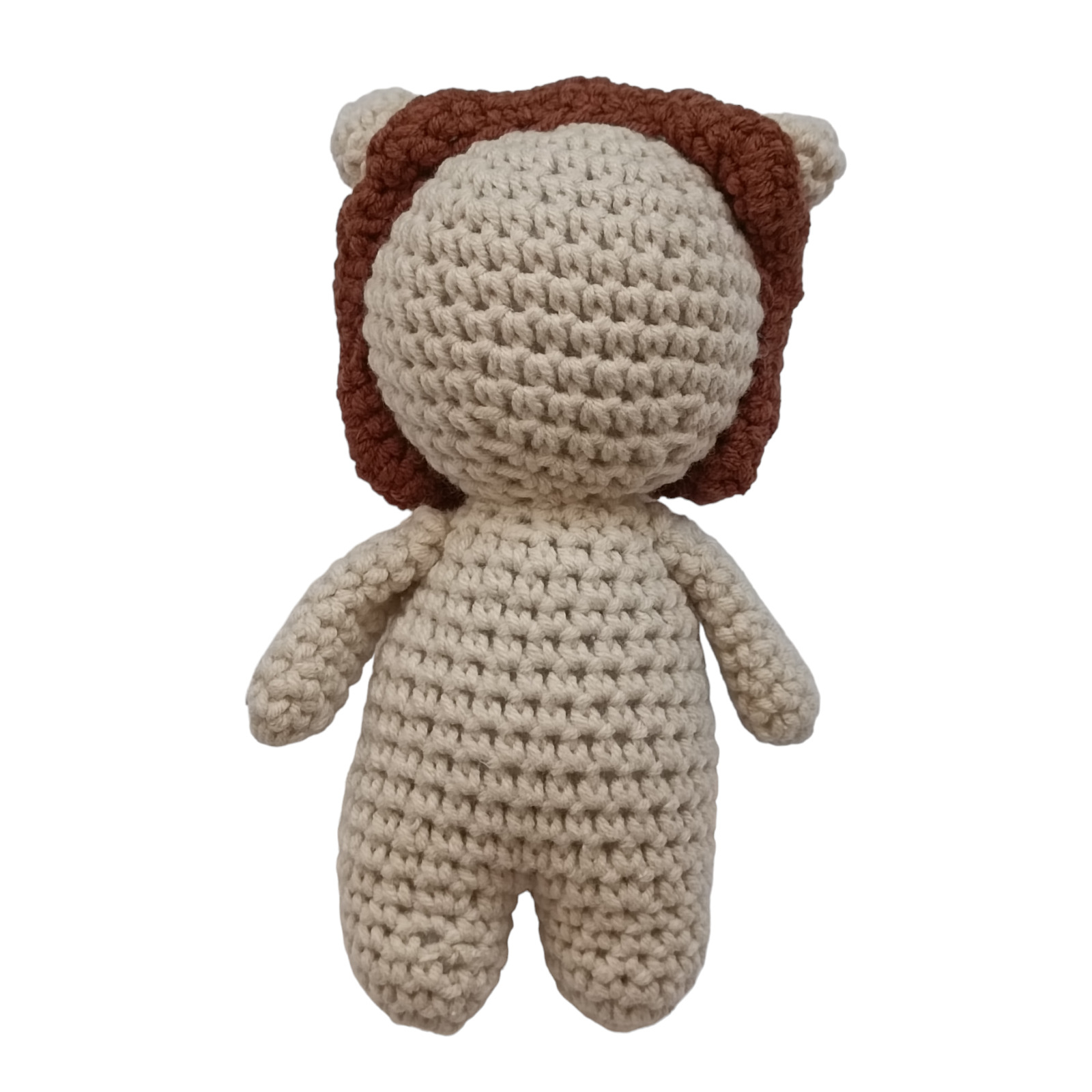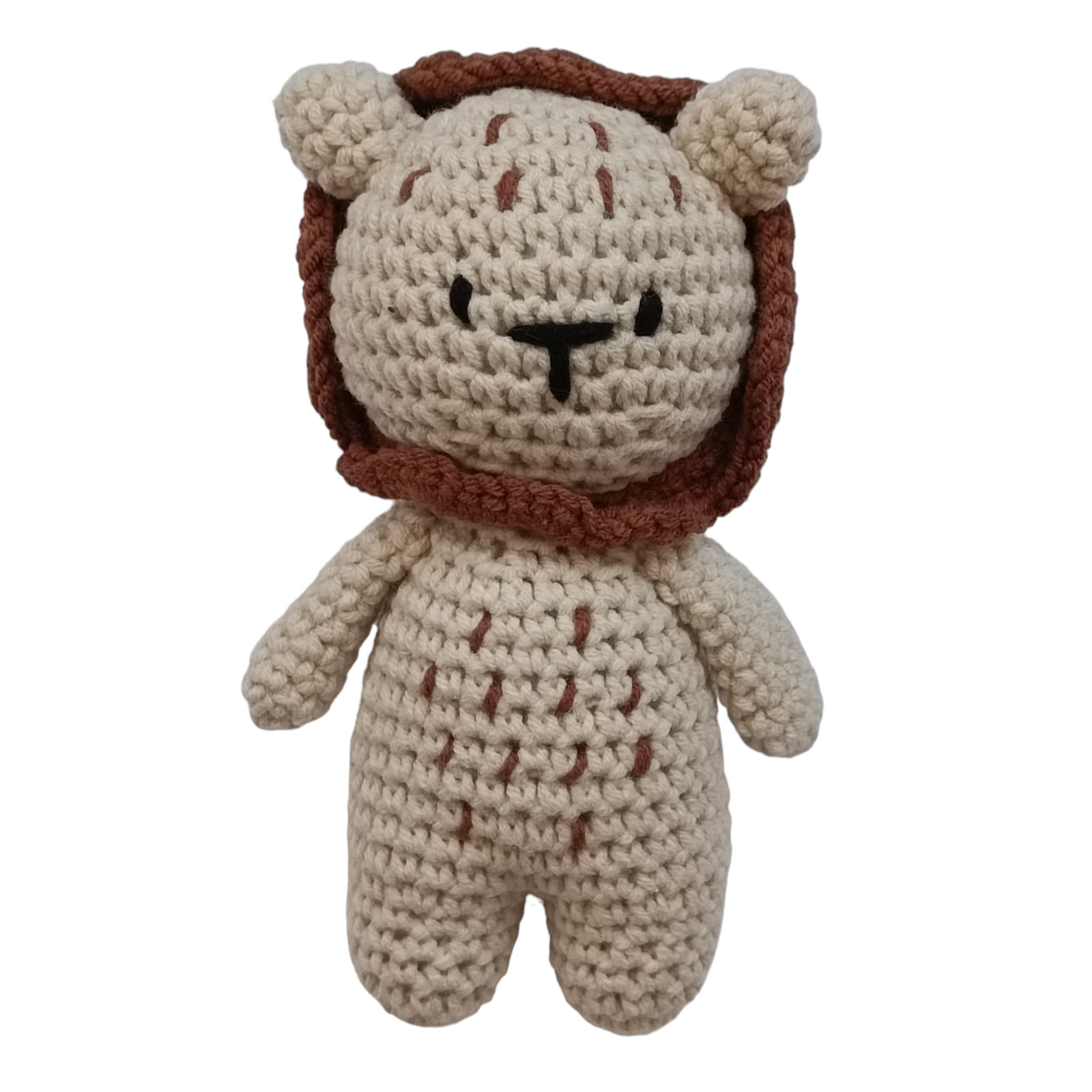 Jucaria crosetata Leu de culoare maro este un accesoriu fermecator si sigur pentru orice copil.