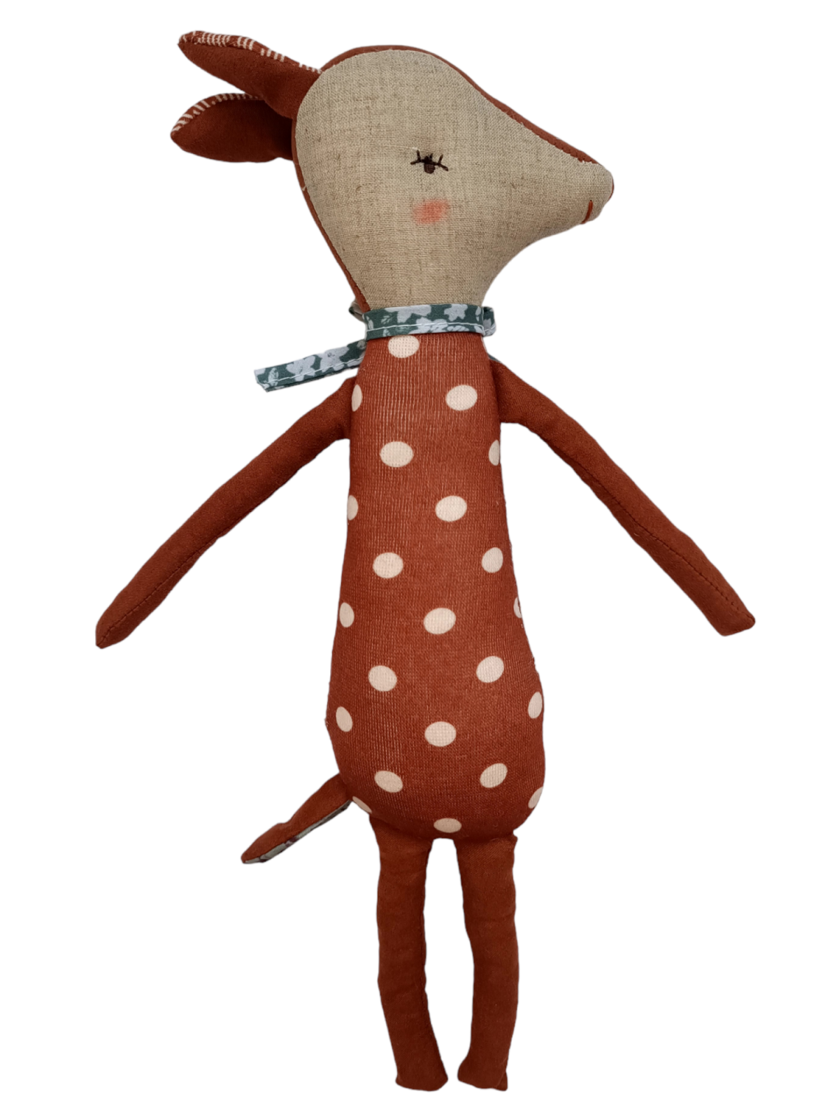Adauga un strop de magie în joaca copilului tau cu aceasta jucarie din material textil, in forma de caprioara. De culoare maro cu buline crem, caprioara este realizata dintr-un material moale si placut la atingere, perfecta pentru imbratisari si joaca. Ochii sunt brodati cu grija, adaugand un detaliu adorabil si sigur pentru micutul tau. Aceasta jucarie este ideala pentru dezvoltarea senzoriala si pentru a aduce un zambet pe fata copilului. Un cadou minunat care combina confortul cu designul fermecator!